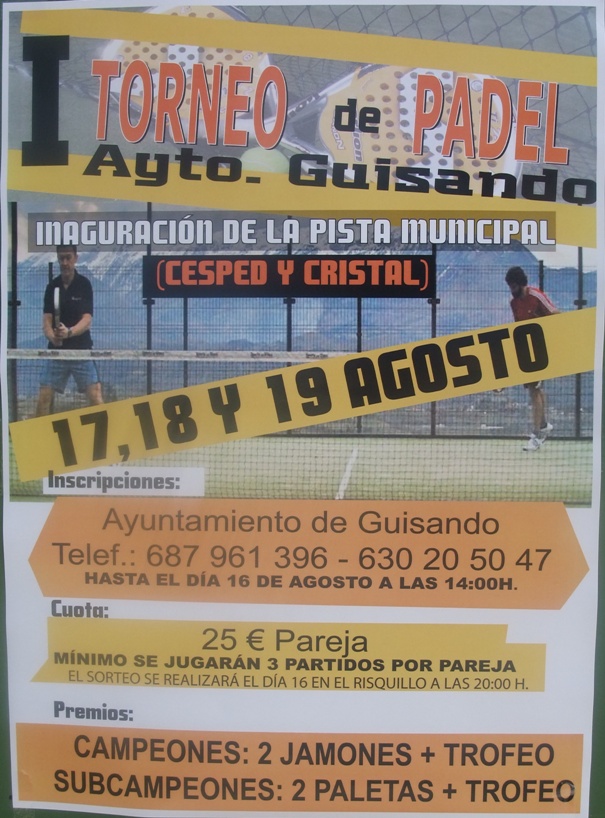 Con motivo de la inauguración de la pista de pádel, el Ayuntamiento de Guisando ha organizado este torneo para los días 17, 18 y 19 de este mes.