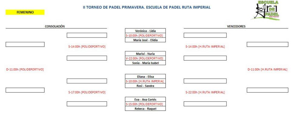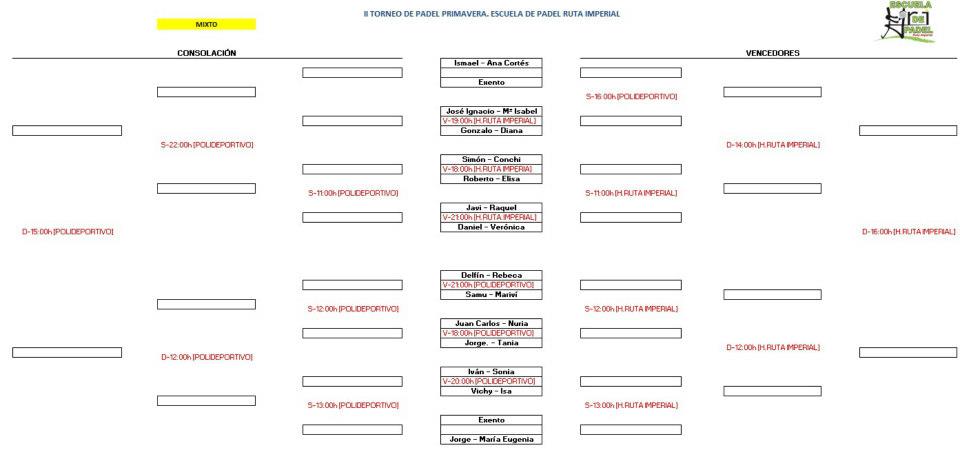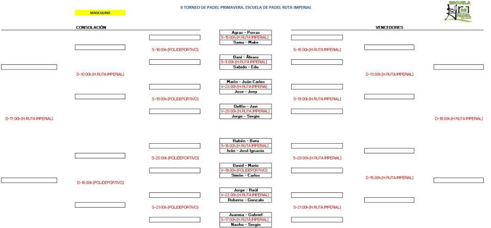 Cuadros del Torneo de Pádel de Primavera Jarandilla de La Vera