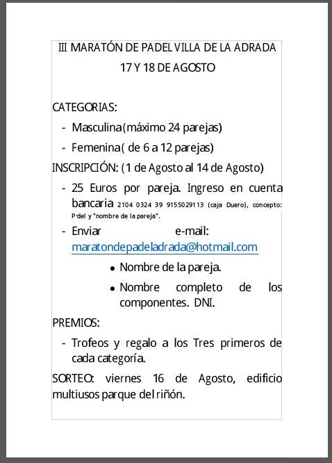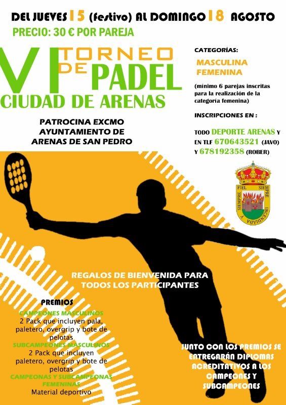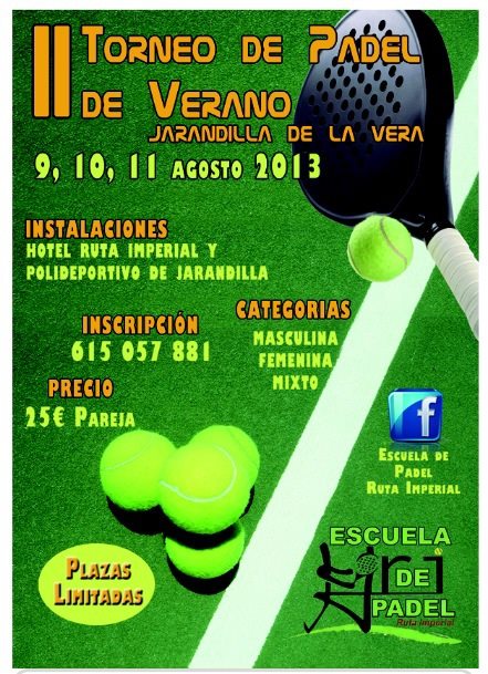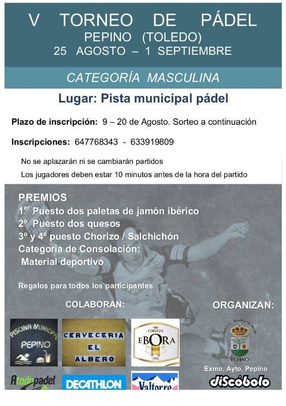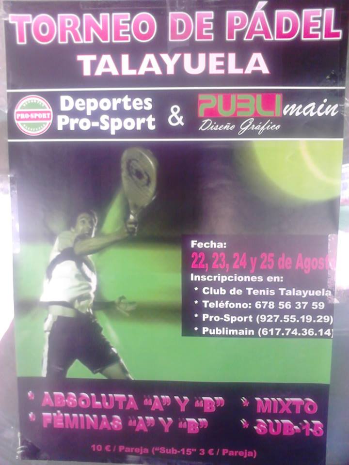 Durante el mes de agosto continua la convocatoria a todos los amantes de los torneos de pádel. Durante el primer fin de semana hemos disfrutado de un magnífico torneo en Guisando. Aquí os dejamos los carteles de las próximas citas. ¡¡¡ A jugar !!!