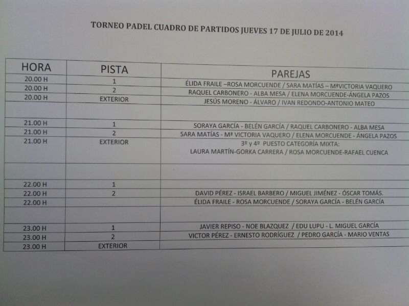CandeledaGeneralTorneos Cuarta jornada del Torneo Semana de Pádel Candeleda 17 julio 2014 LE Nos vamos aproximando al desenlace. Ya se ha producido alguna sorpresa y se van igualando mucho los partidos. No te pierdas los de hoy en el antiguo centro de tabaco de Candeleda. Compartir en redes: