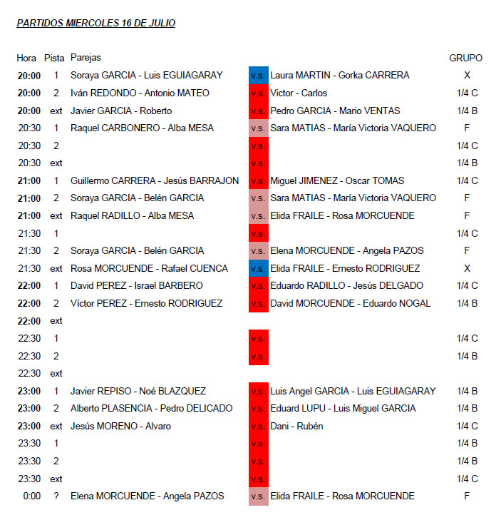 Está teniendo muy buena acogida de público este torneo. Los espectadores aAcuden mayormente de Madrigal de La Vera, Poyales del Hoyo, Arenas de San Pedro y, por supuesto, Candeleda. Publicamos los partidos que tendrán lugar esta jornada, así cada uno podrá elegir los que se desean ver. Hasta ahora hemos podido disfrutar de partidos muy reñidos, sobre todo de las féminas. Las categorías mixta y femenina siguen en la fase de grupos (se juegan a doble vuelta) y la masculina ya está en la fase de cuartos de las dos categorías resultantes: Masculina B y masculina C (no se pone categoría A).