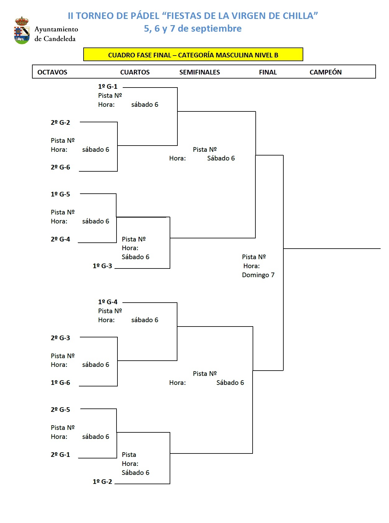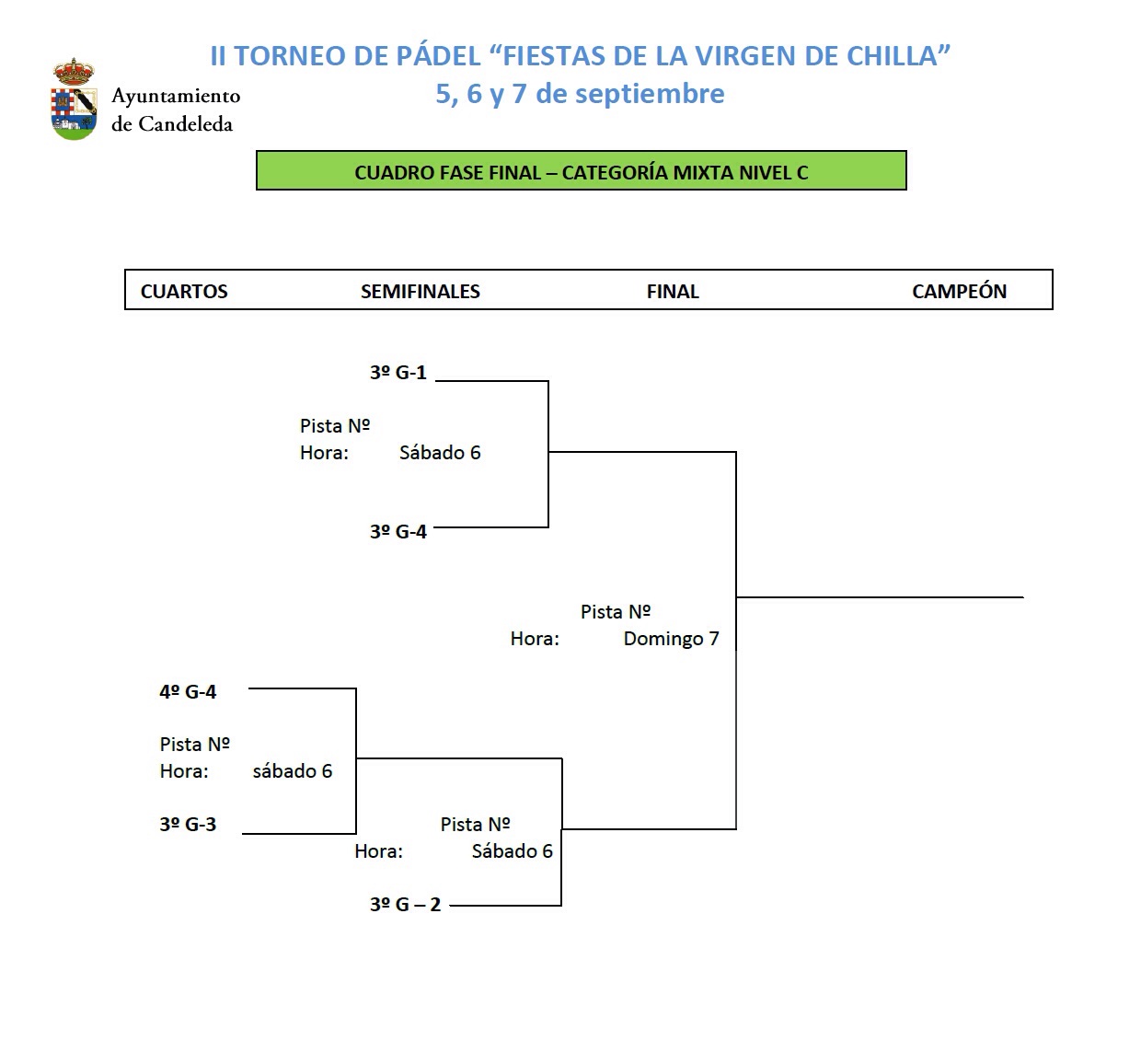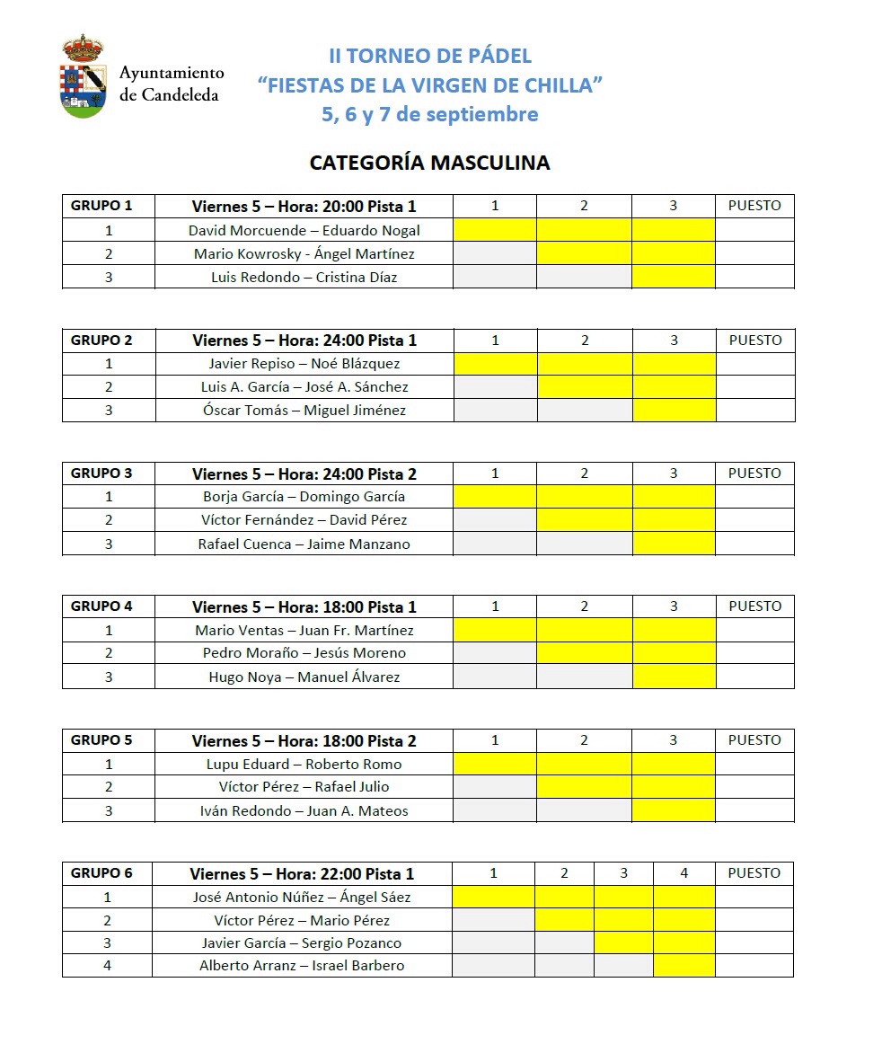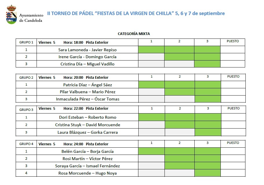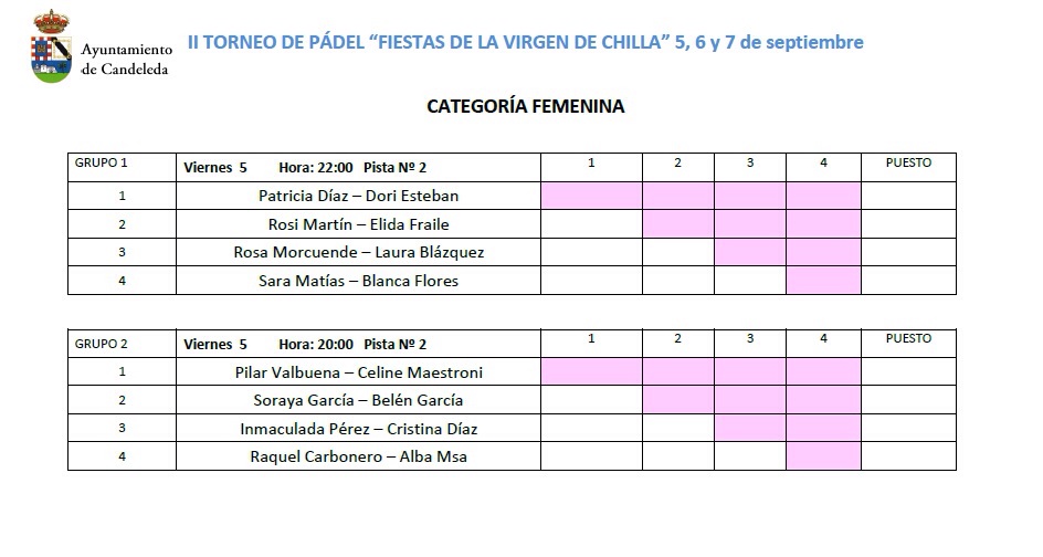 Cuadros y grupos del II Torneo de Pádel Virgen de Chilla – La Vela