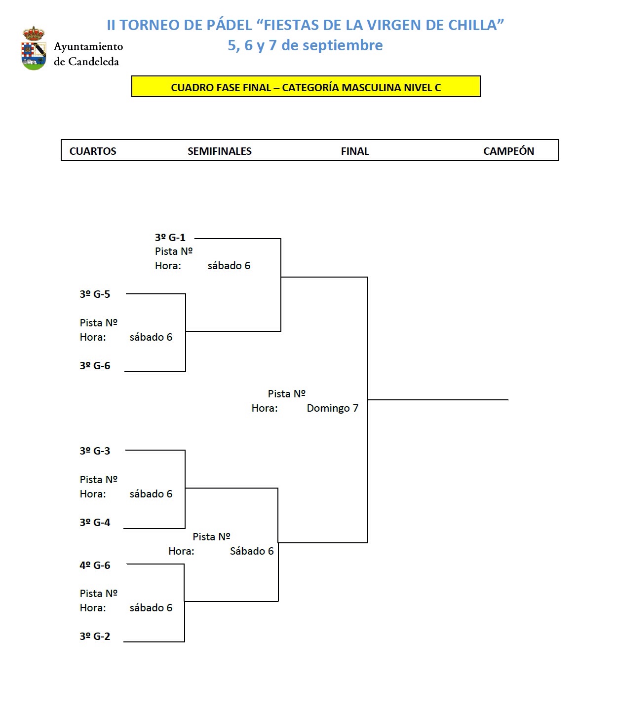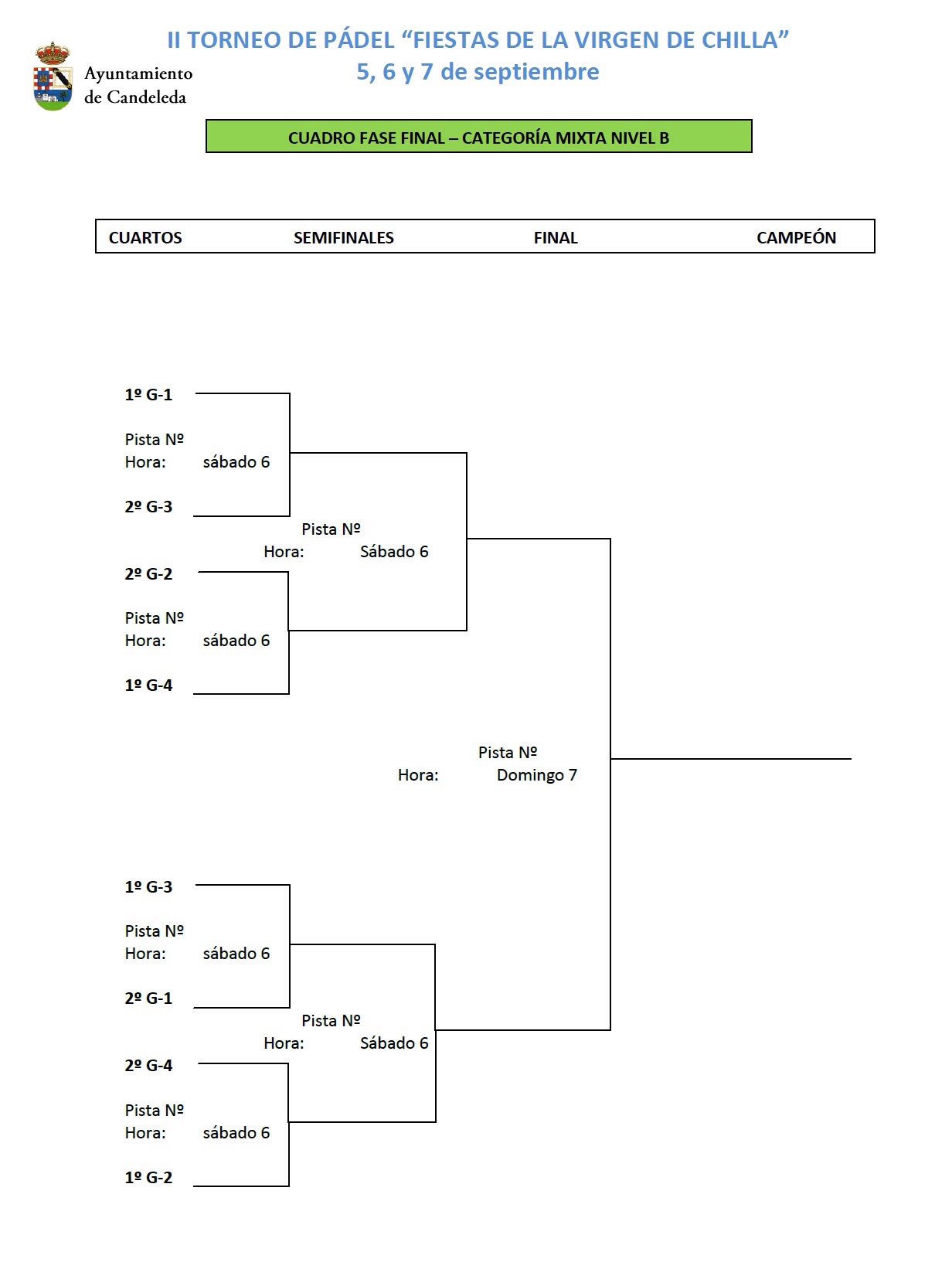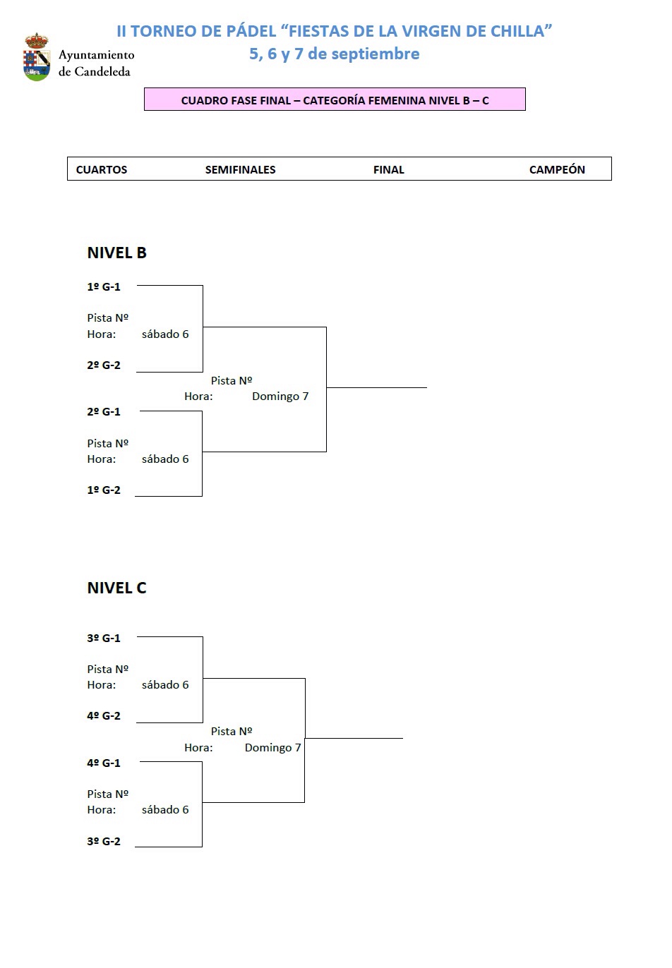 Cuadros y grupos del II Torneo de Pádel Virgen de Chilla – La Vela