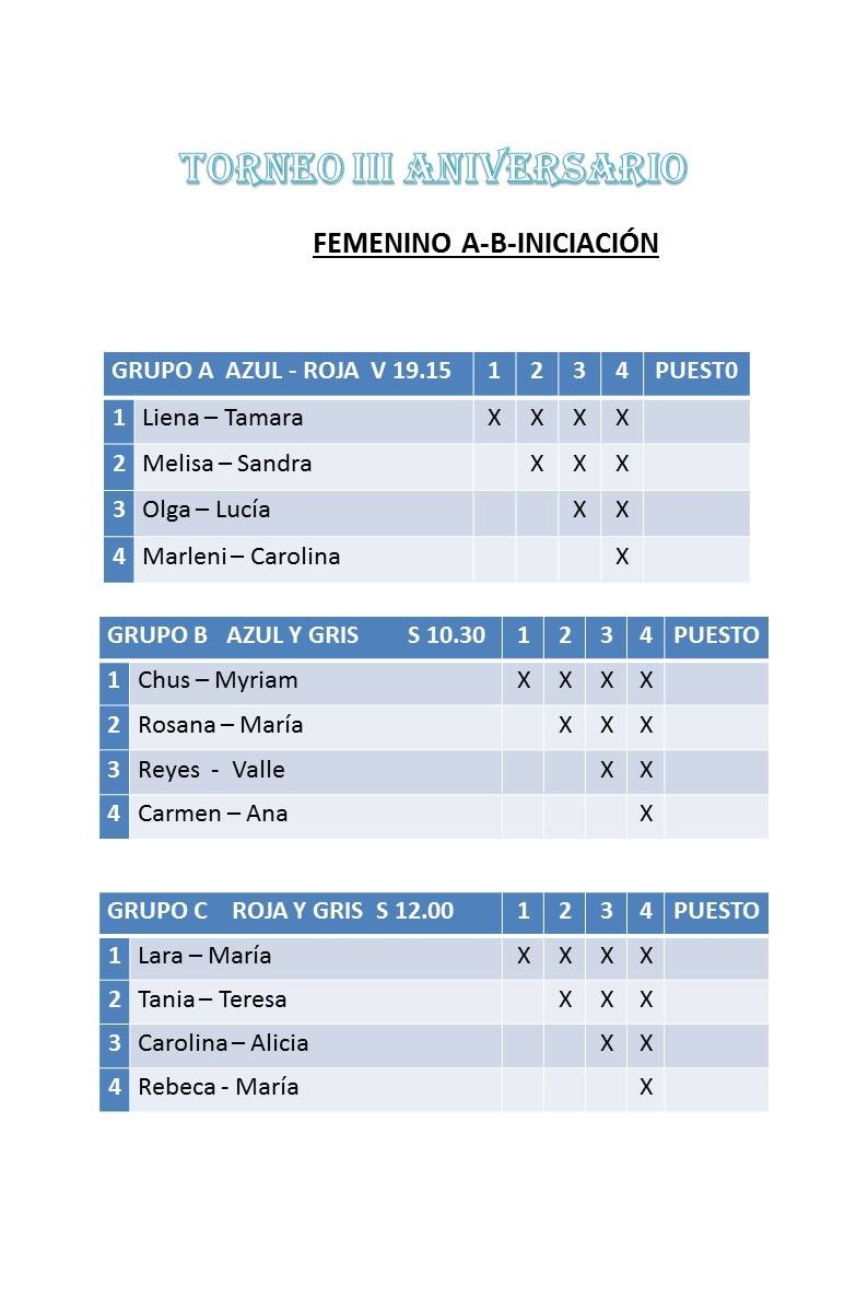 Este año el torneo III Aniversario de La Reja Pádel coincide con las fiestas de muchos de los pueblos del Valle del Tiétar y La Vera, por ello la participación de los jugadores de nuestras competiciones es muy escasa. No obstante aquí dejamos los grupos y los horarios porque muchos de nuestros amigos estarán participando. ¡Iremos a verles!