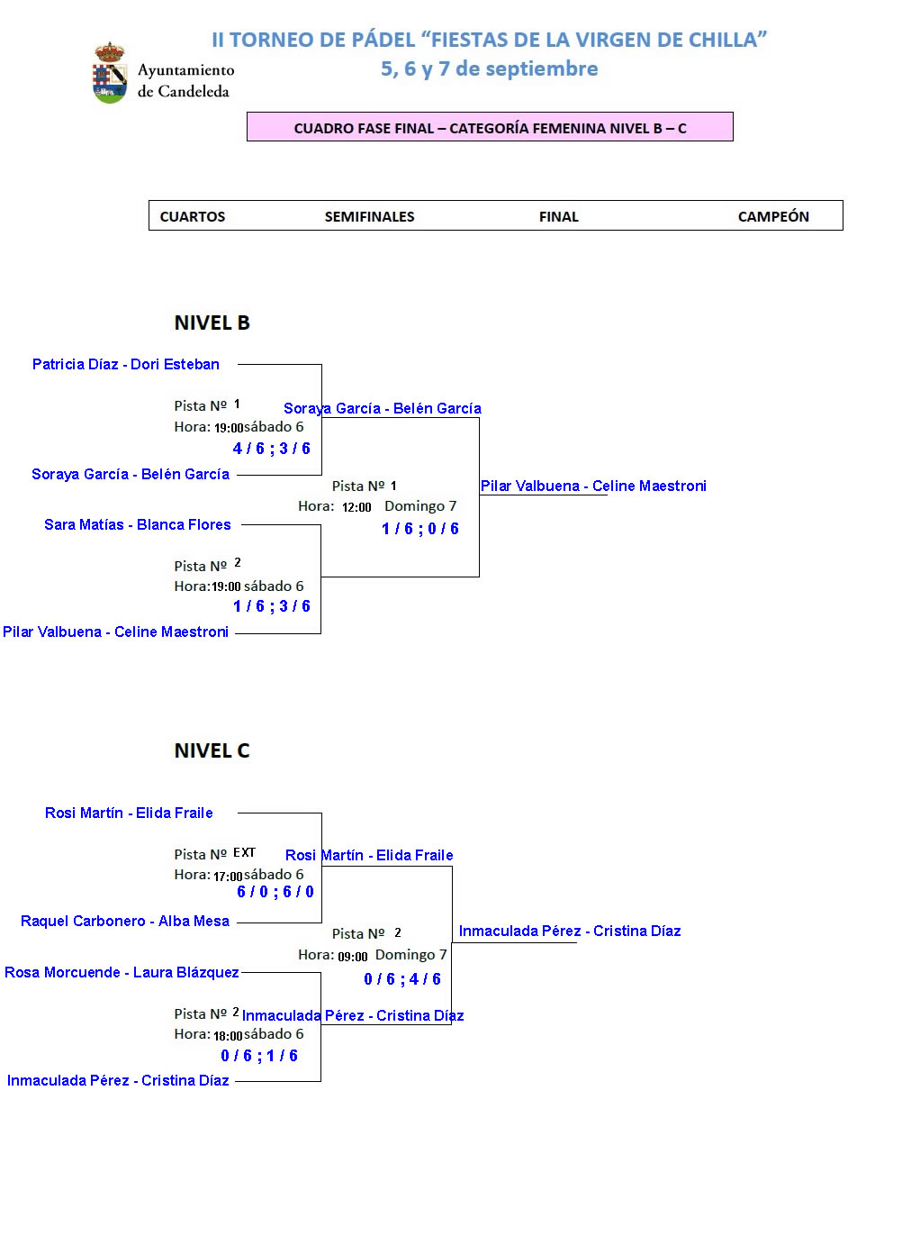 - Campeonas: Inmaculada Pérez – Cristina Díaz