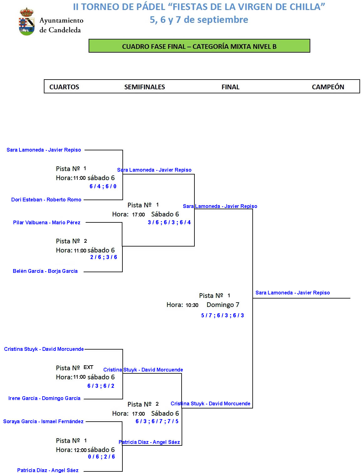 - Campeones: Sara Lamoneda – Javier Repiso