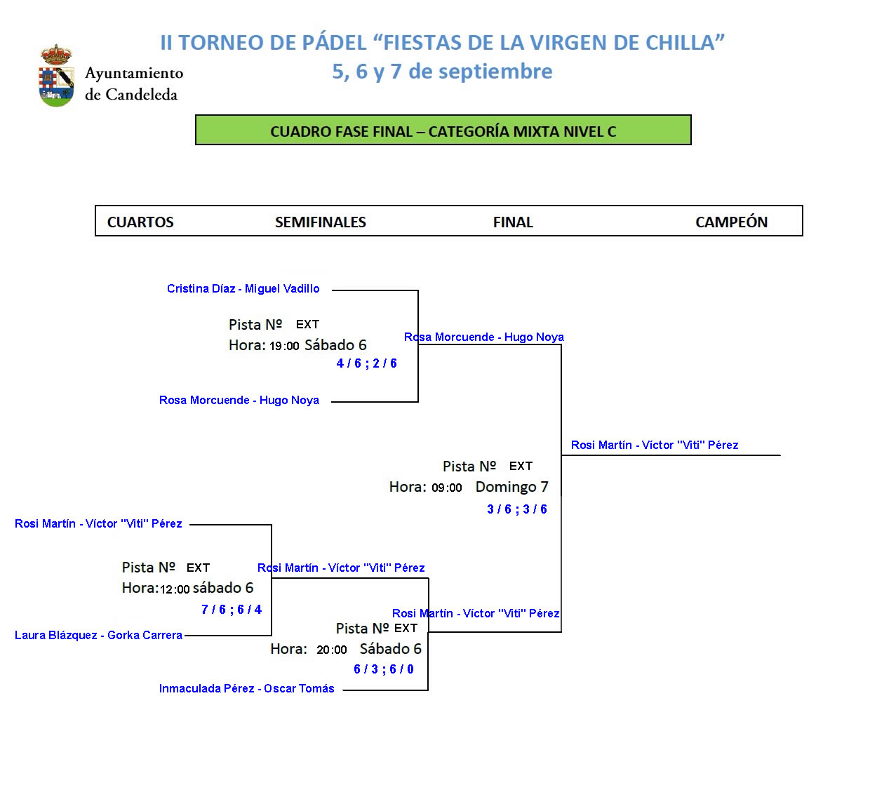 ¡Magnífico fin de semana de pádel en Candeleda!. Todos los que amamos este deporte tenemos que felicitarnos por el rotundo éxito de esta segunda edición del torneo de las fiestas patronales de Candeleda. Muchos más participantes que la edición anterior y un altísimo nivel de juego. La categoría de mixtos ha sido la gran revelación de este torneo y ha estado muy igualada desde la fase de grupos.
