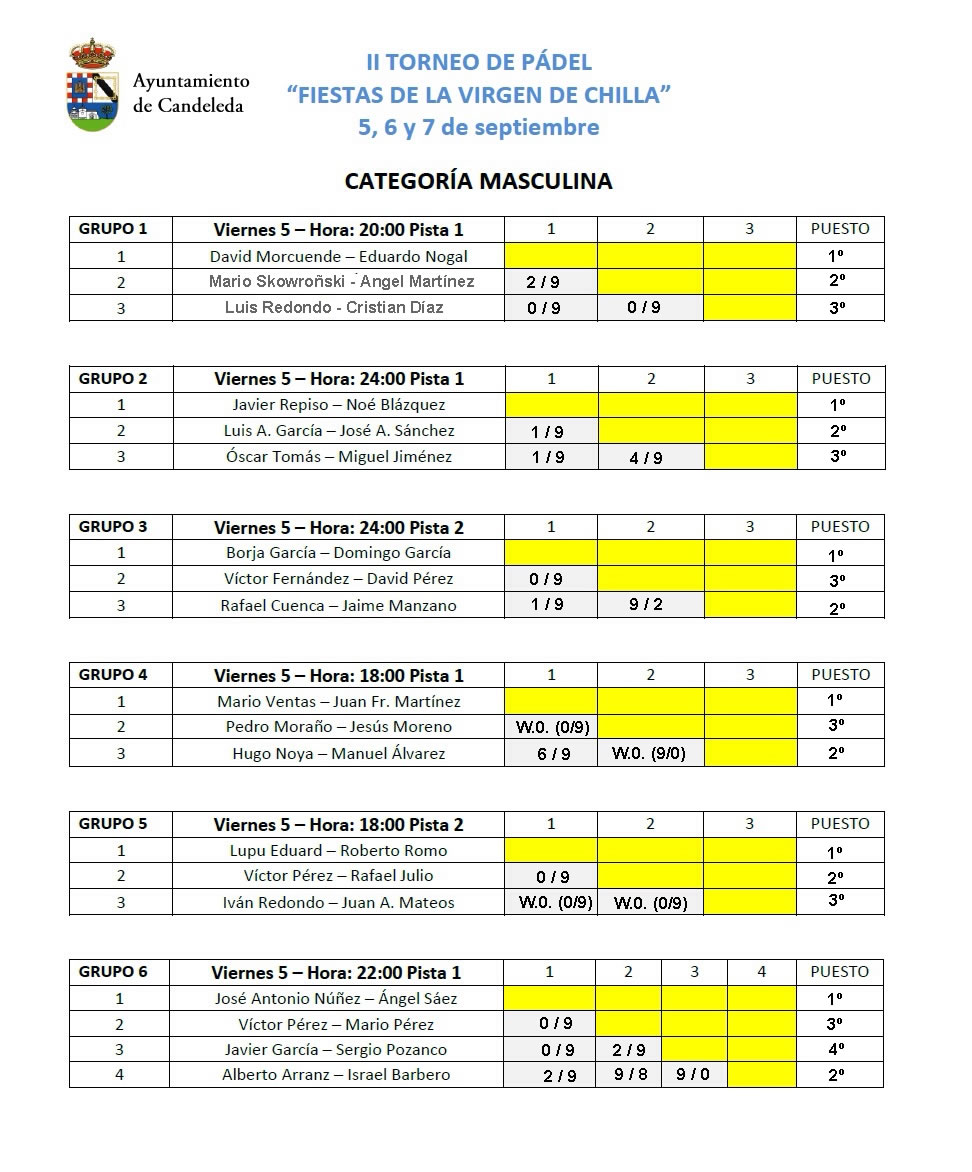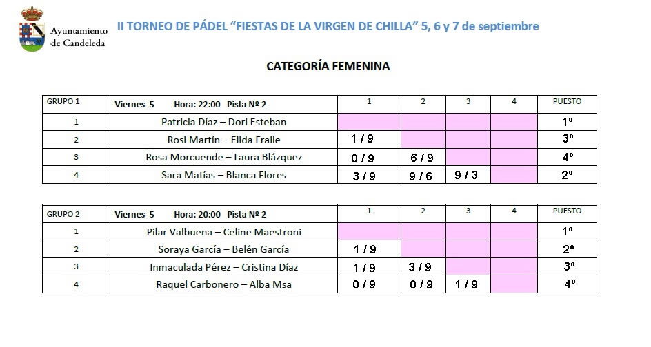 Resultados II Torneo de Pádel Virgen de Chilla – La Vela