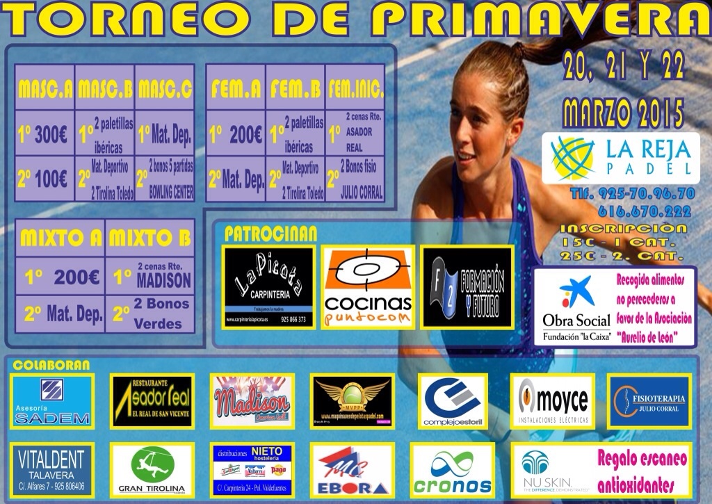 Llegó marzo y ya empiezan a anunciarse torneos de pádel por toda España. Para abrir boca en esta primavera tenemos uno de los más emblemáticos de la zona: El Torneo de Primavera de La Reja Pádel. Esperamos que pueda ir una amplia representación de todos los jugadores que participan en las competiciones Aserpádel.