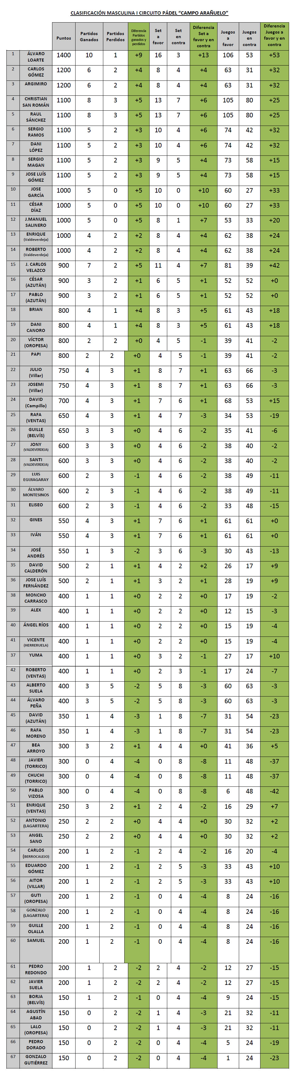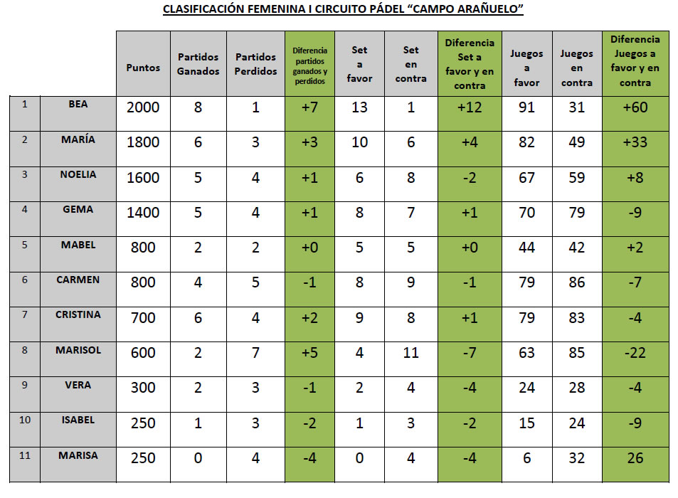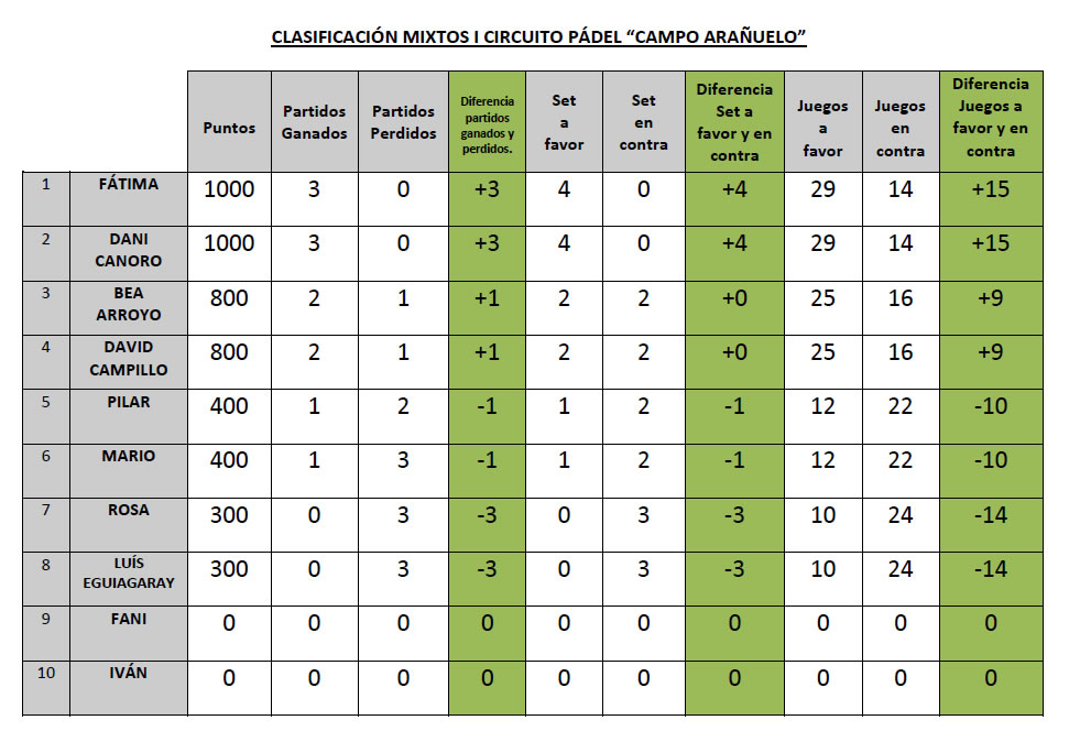 Resultados del Torneo Puente del Arzobispo del Circuito Campo Arañuelo