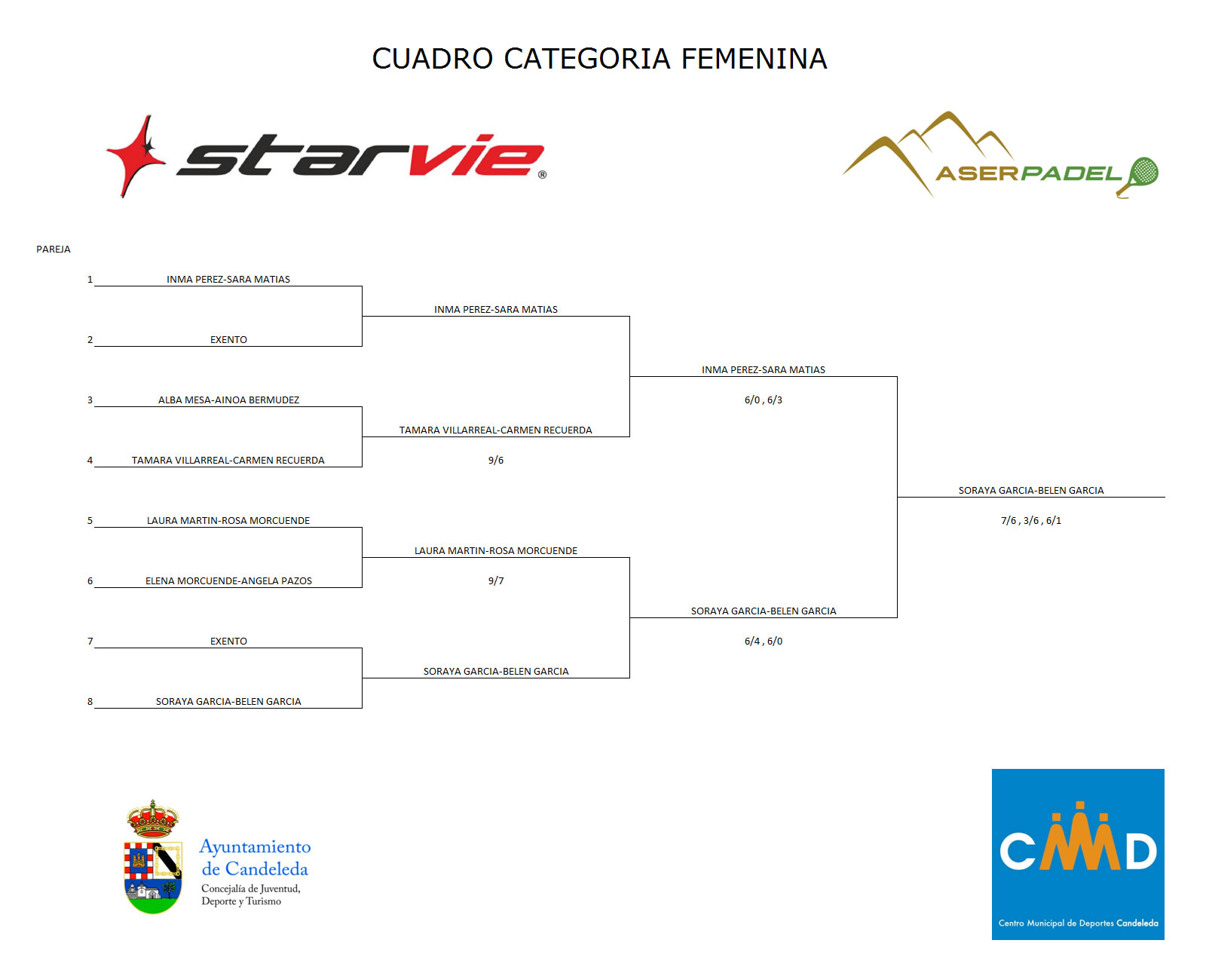 La categoría femenina sigue manteniendo la tradición de una participación baja. Esperamos que para próximas ediciones podamos hablar de un mínimo de 12 parejas participantes. Hubo encuentros interesantes al formase algunas parejas insólitas hasta la fecha. Las dos favoritas llegaron a la final y nos brindaron, como siempre, un interesante partido que esta vez se resolvió en tres sets.