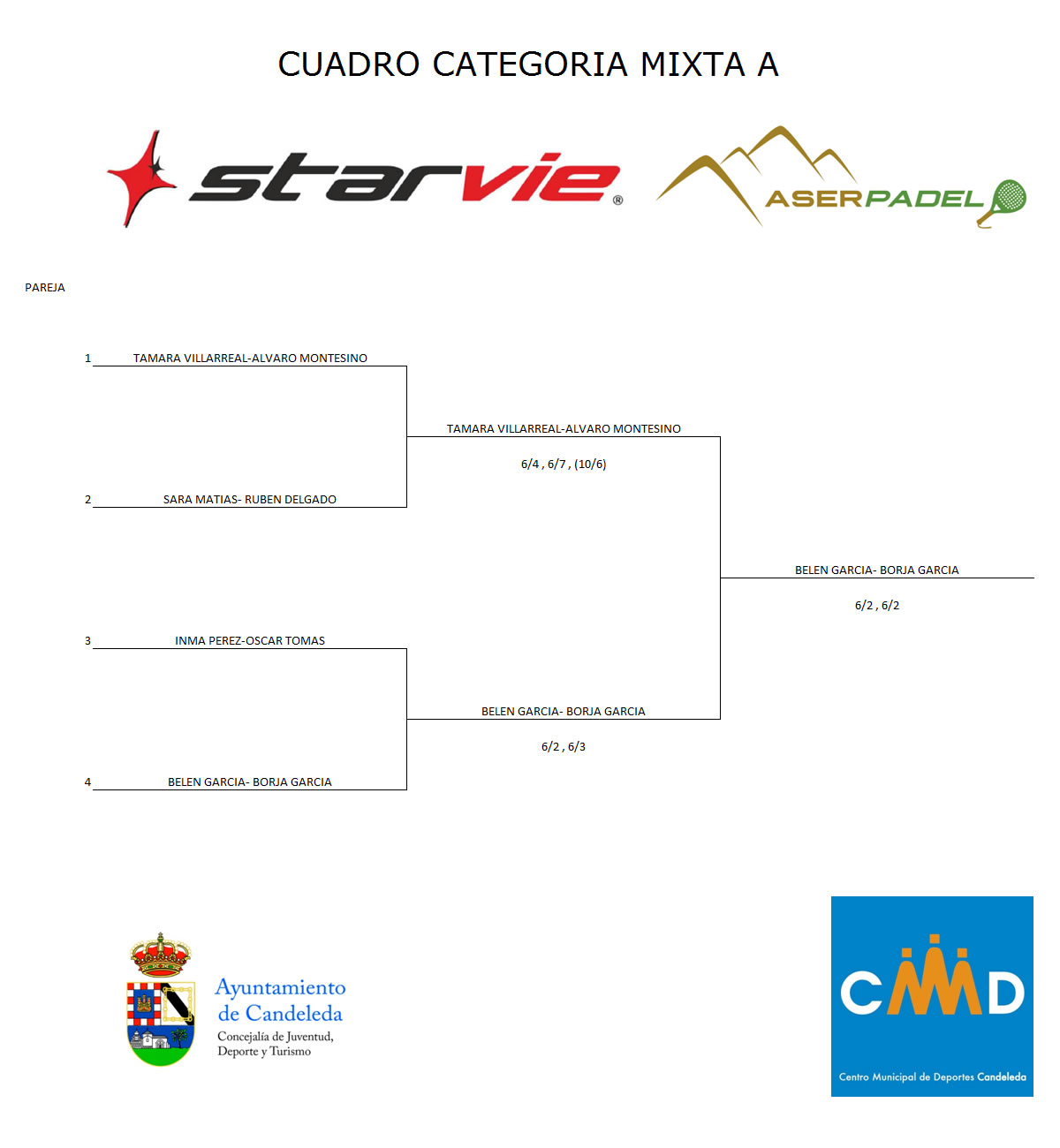 En la mixta las cuatro parejas que clasificaban para la A no extrañaron a nadie y al final se cumplieron todos los pronósticos. Por su parte la categoría B nos demostró que cada día las parejas mixtas están más igualadas. La prueba es que las dos semifinales se resolvieron en el tie-break decisivo y que la final fue un maratoniano partido a tres sets.