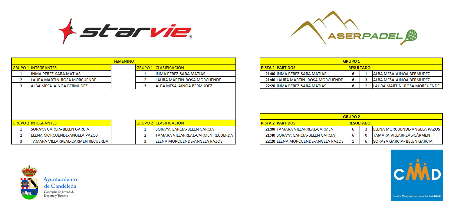 Desde aquí felicitamos, además de a todos los participantes y público asistente, al Ayuntamiento por la iniciativa, a Starvie por su colaboración, a Neréa Bermúdez por su ayuda con el reportaje gráfico (que se puede ver en nuestra galería de fotos) y, muy especialmente, a Israel Chinarro que supo sacar con sobresaliente su primera organización de un torneo de pádel.