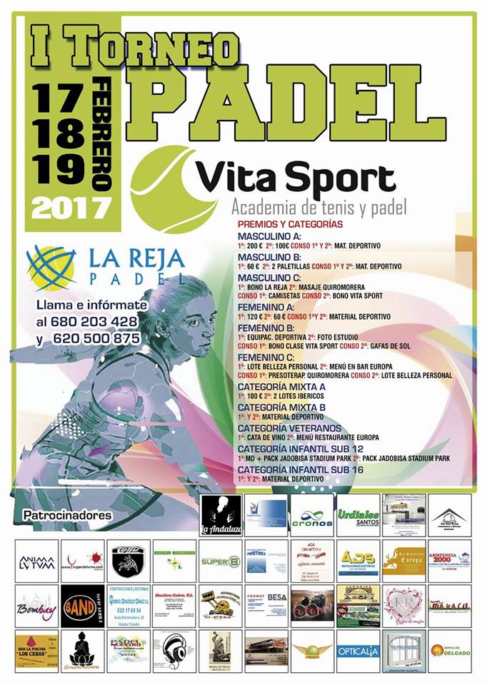 General I Torneo de Pádel Vita Sport 13 febrero 2017 LE Este fin de semana se celebrará el I Torneo de Pádel Vita Sport en las instalaciones de La Reja, en Pepino (localidad muy próxima a Talavera de la Reina). Con la madrina que tiene, Tamara del Pino Calero, auguramos un exitazo. ¡¡¡No te lo pierdas!!! Compartir en redes: