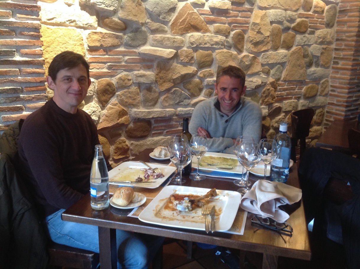 Con botella de vino y ración en el Bar Lagartín, de Candeleda: