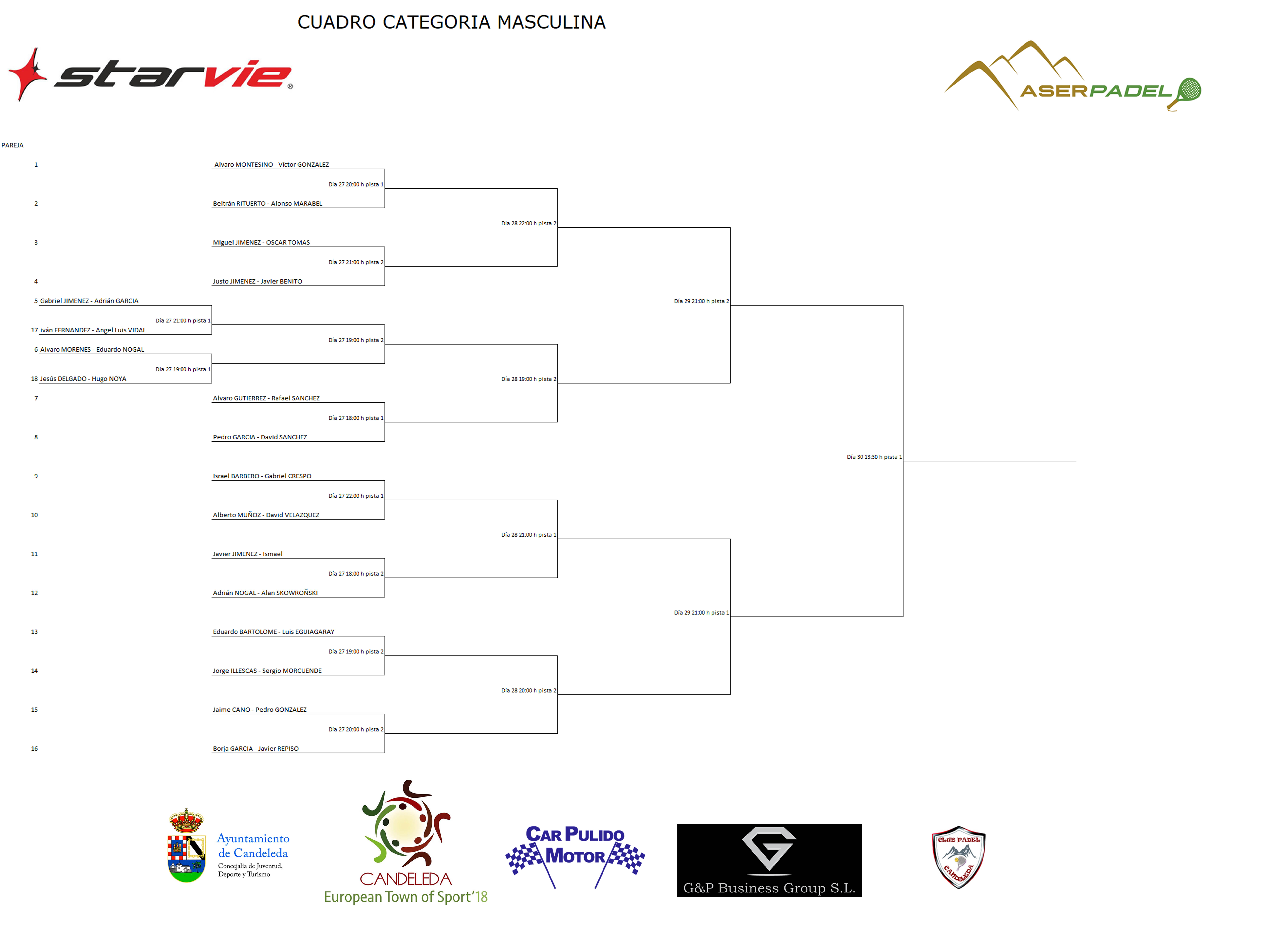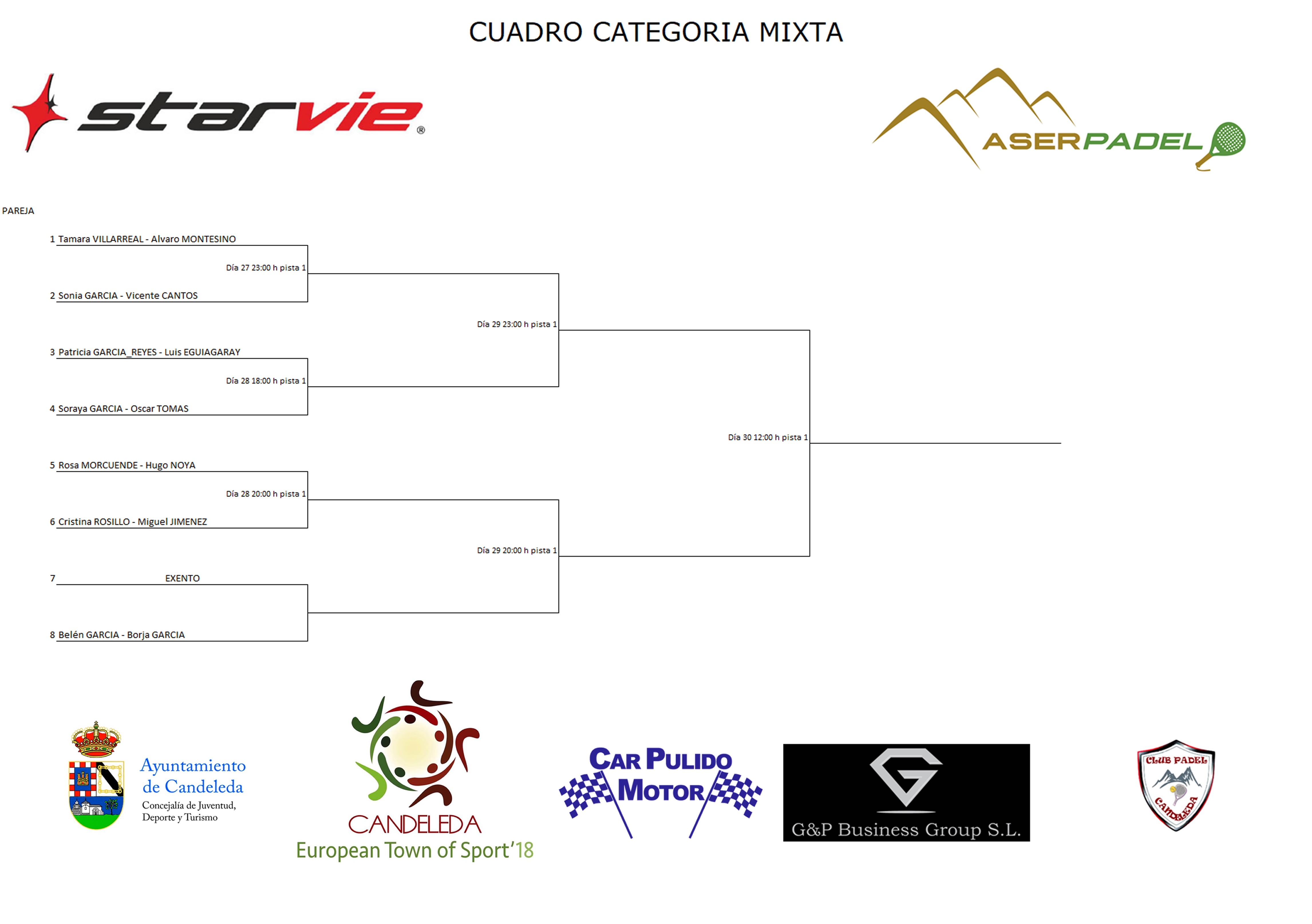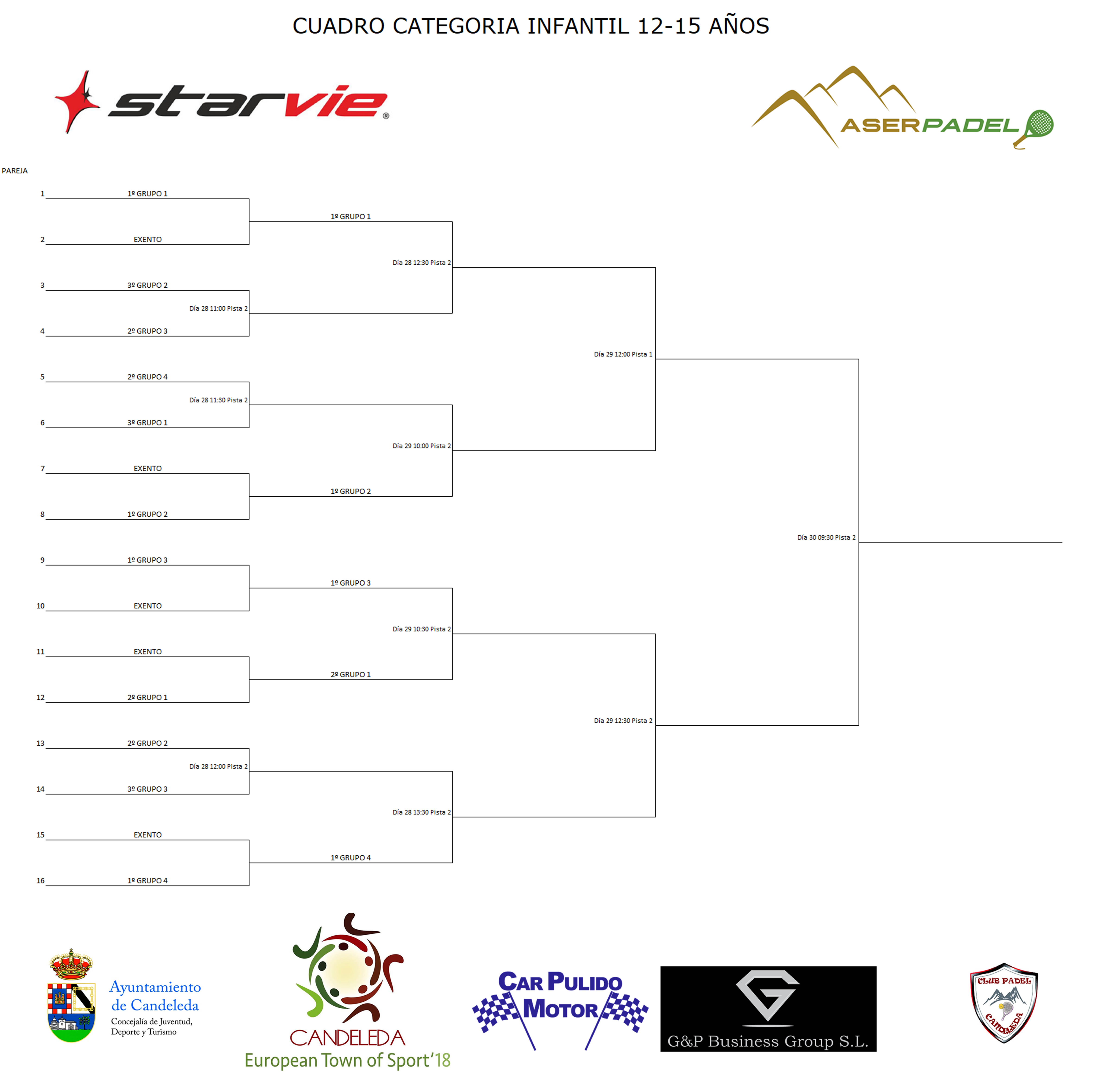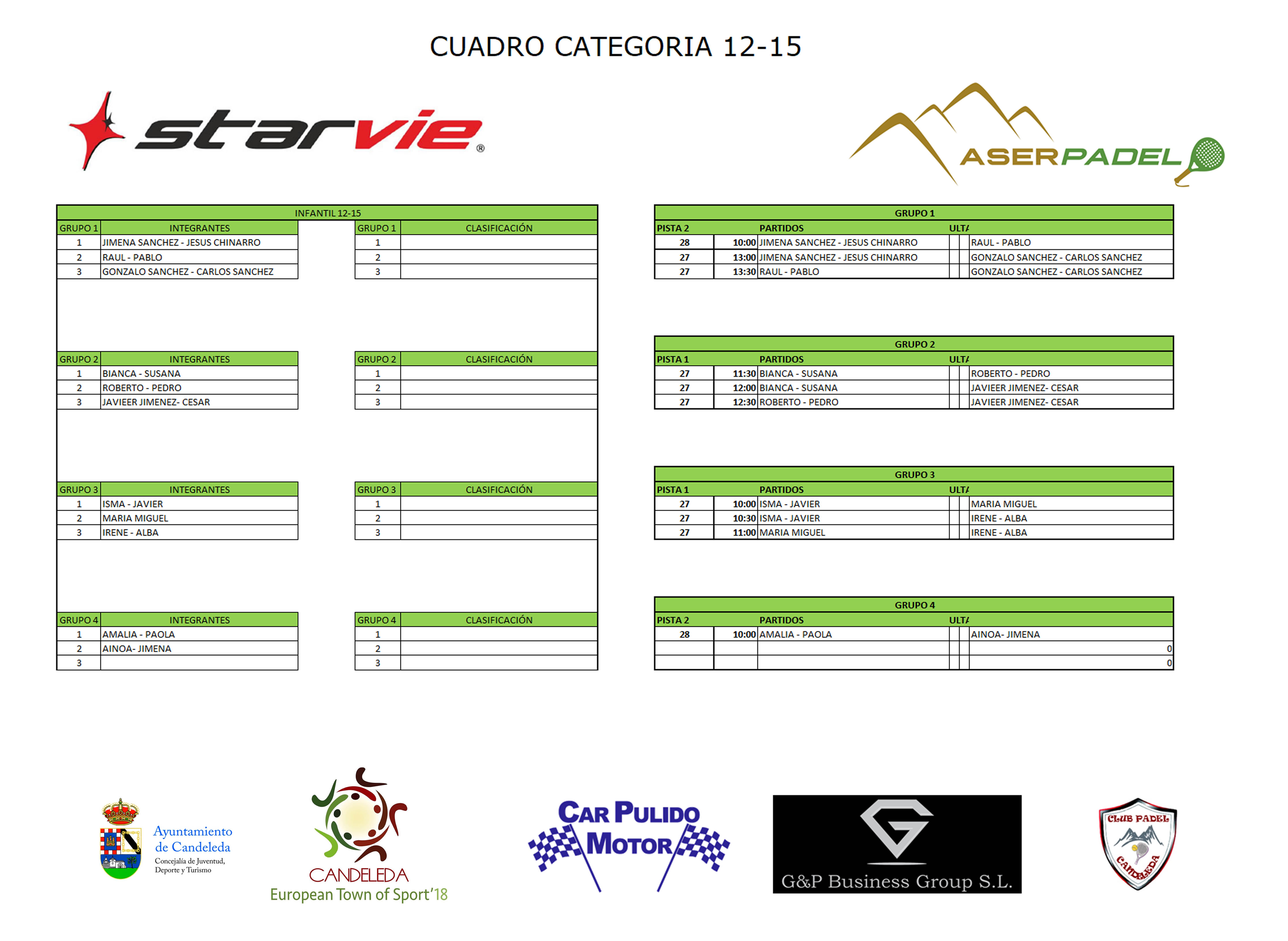 CandeledaGeneralTorneos Cuadros y Horarios del Torneo de Pádel Navideño Villa de Candeleda 27 diciembre 2017 LE Aquí os dejamos los diferentes cuadros y horarios del Torneo de Pádel Navideño Villa de Candeleda. Esperamos que disfrutéis: menores < 12 Menores 12-15 Cuadros Principal Menores 12-15 Femenina Mixta Masculina Femenina Mixta Consolación Masculina Consolación¡ón Compartir en redes: