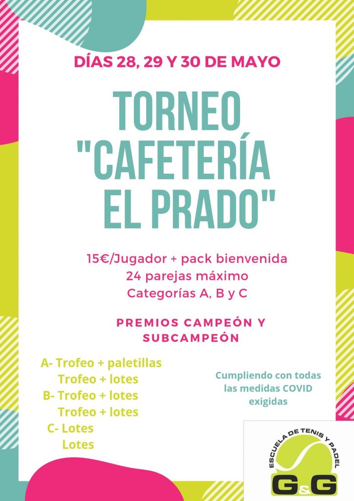 Arenas de San PedroTorneos Torneo Cafetería El Prado 19 mayo 2021 LE En Arenas de San Pedro tendrá lugar el último fin de semana de mayo (días 28, 29 y 30) el Torneo Cafetería El Prado. Está limitado a 24 parejas. Compartir en redes: