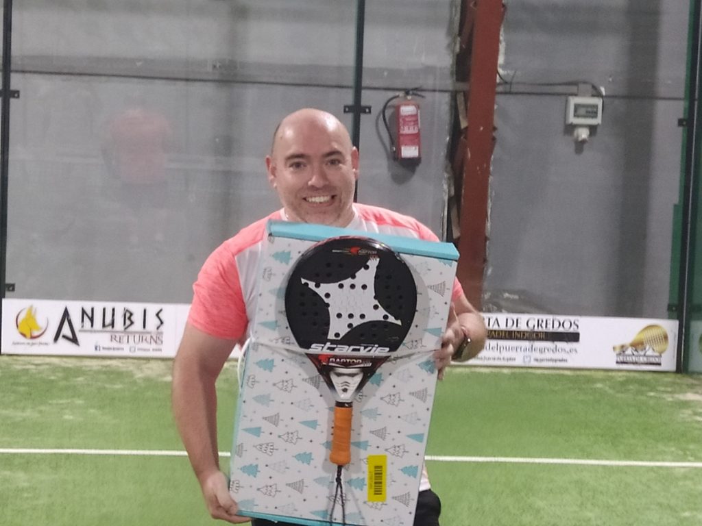 El mismo día 22 tenía entrenamiento y se le hizo entrega de la cesta rodeado de sus compañeros, los propietarios del supermercado Covirán-El Arenal y el director-gerente de las instalaciones deportivas Pádel Puerta de Gredos