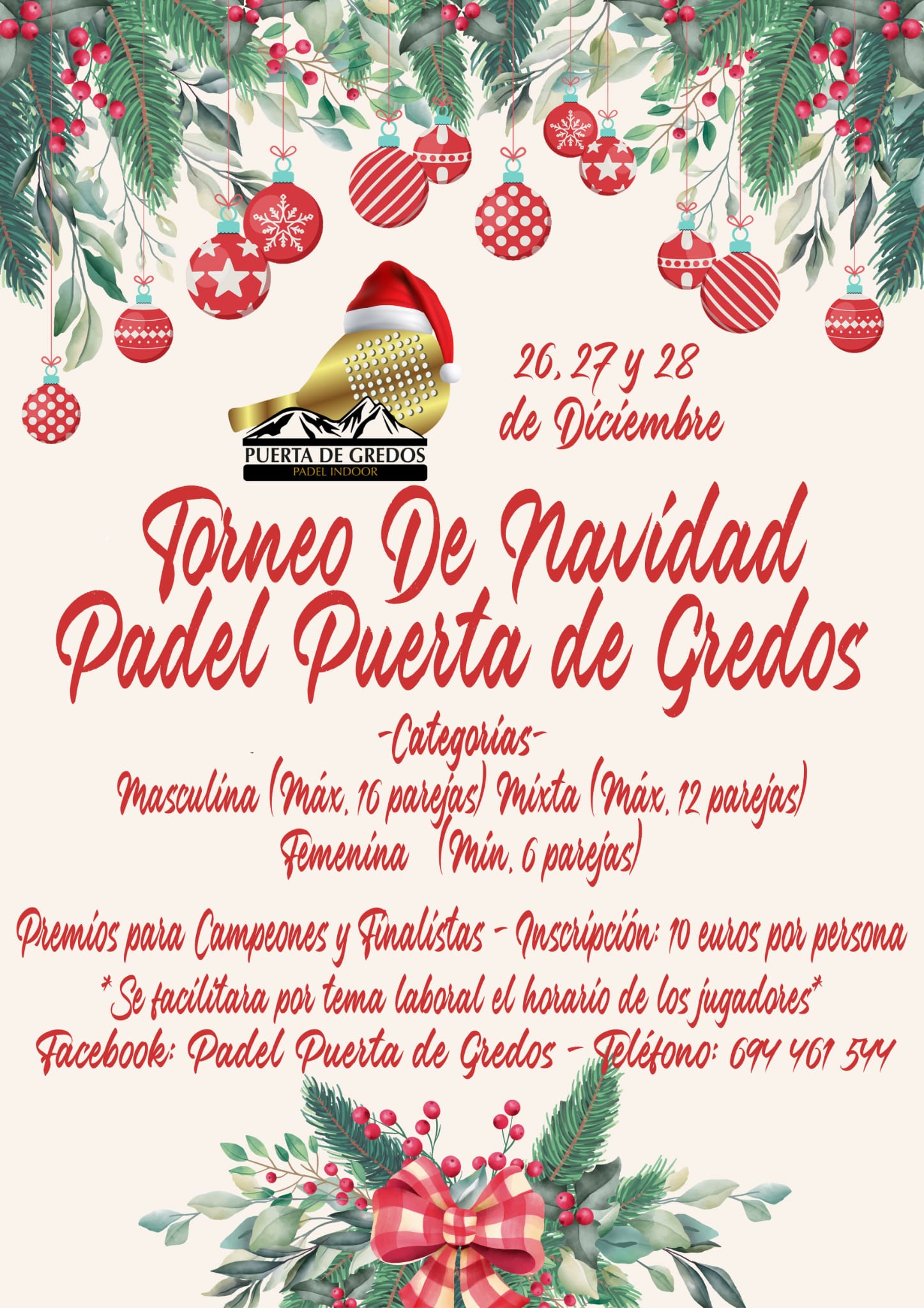 Después de Navidad y antes de fin de año, durante los días 26, 27 y 28 de diciembre, tendrá lugar el Torneo de Navidad Pádel Puerta de Gredos.