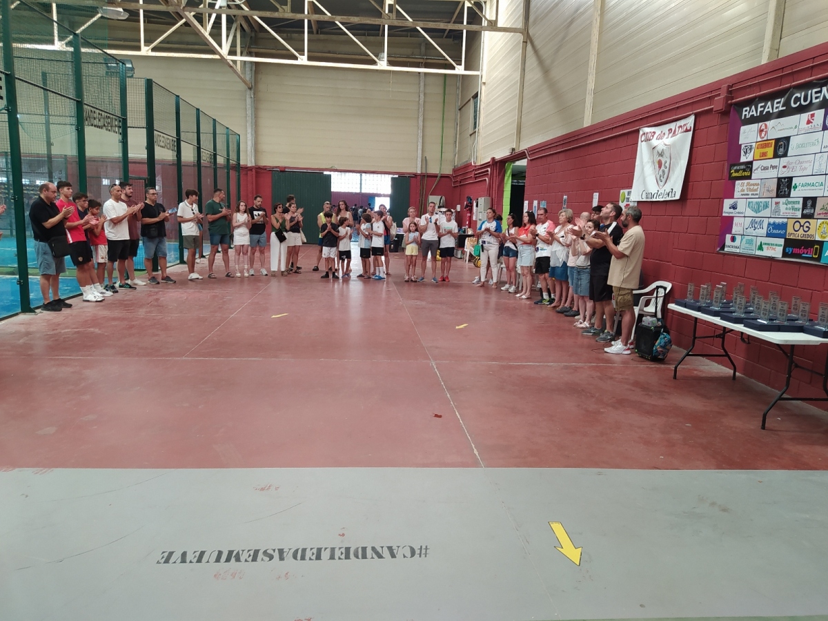 Al inicio del acto de entrega de los premios, el presidente del Club de Pádel Candeleda, don Alberto Arranz, dedico unas palabra de agradecimiento a los colaboradores, patrocinadores y jugadores; pasando a leer unas palabras en recuerdo de Rafael Cuenca y guardándose un minuto de silencio.