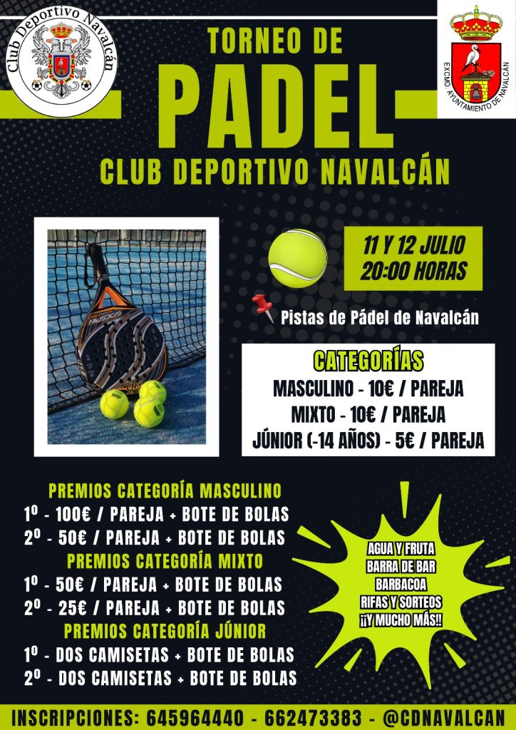 CartelNavalcánTorneos Torneo de Pádel C.D. Navalcán 2 julio 2025 LE Nuestros vecinos de Navalcán celebran un torneo de pádel los días 11 y 12 de Julio. Tienes los detalles en el cartel Compartir en redes: