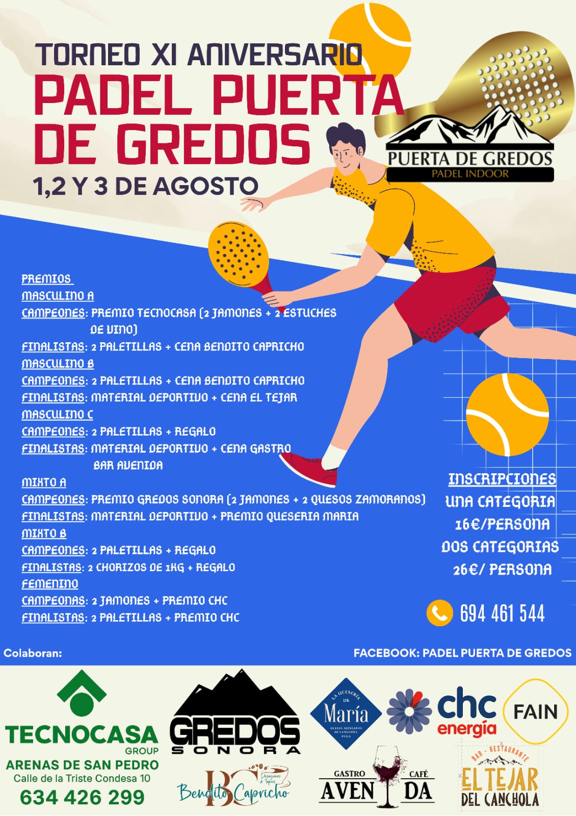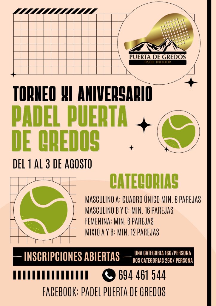 CartelRamacastañasTorneos Torneo XI Aniversario Pádel Puerta de Gredos 9 julio 2025 LE Otro clásico de la zona que siempre atrae a numerosos jugadores de la comarca y veraneantes es el Torneo Aniversarios Pádel Puerta de Gredos. Disfruta de un magnífico ambiente padelero en los primeros días de agosto Compartir en redes: