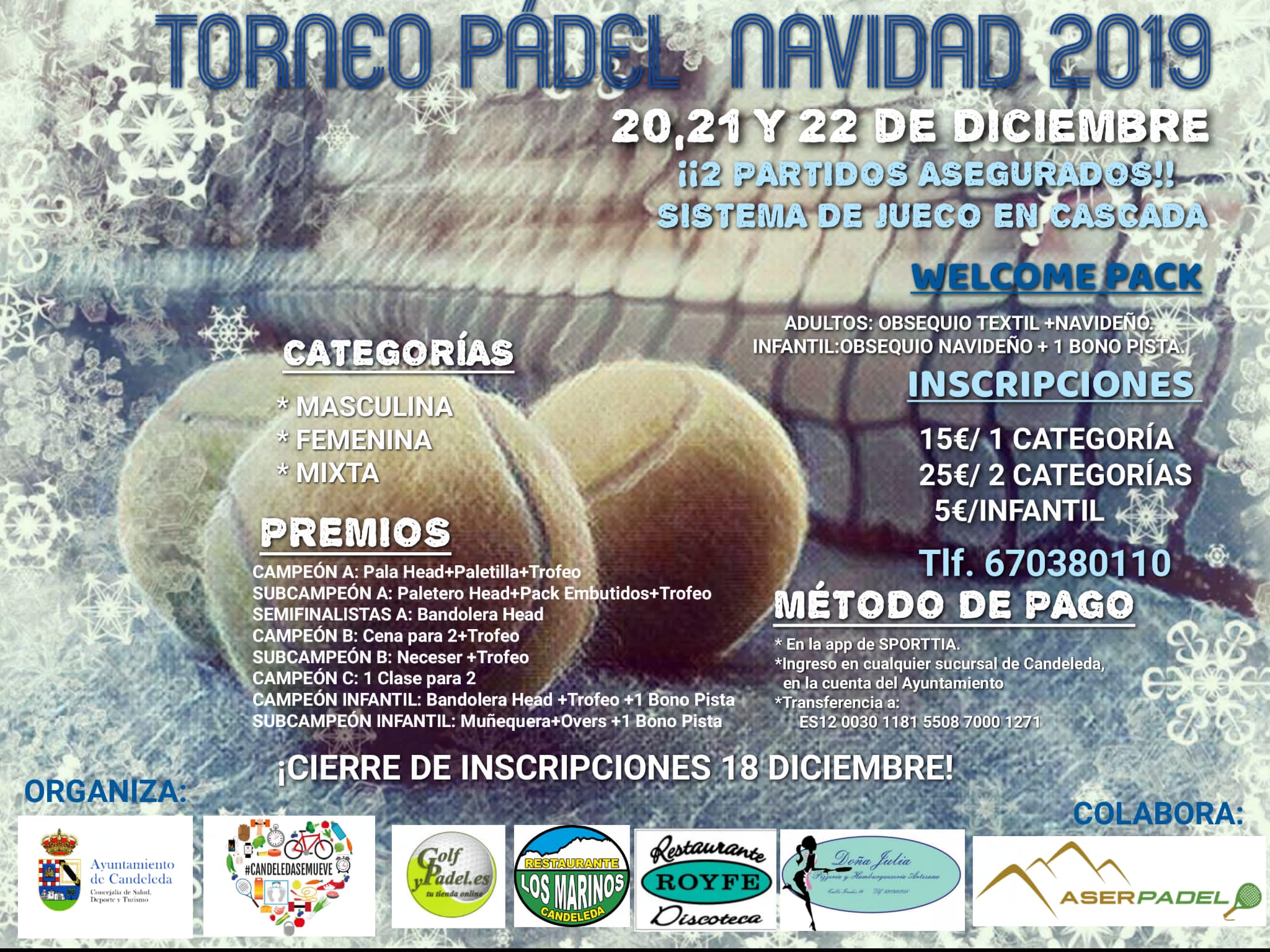 En el Torneo de Navidad de Candeleda, en la categoría masculina, si hay suficientes parejas inscritas, se va a realizar